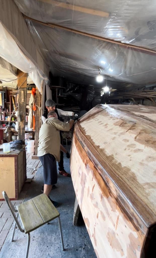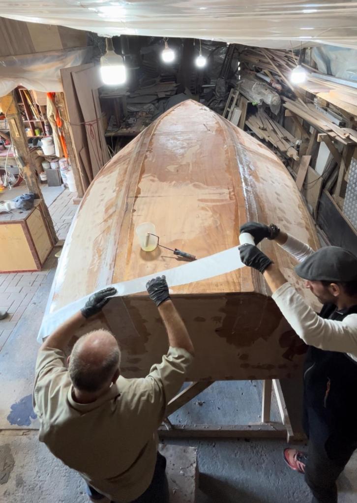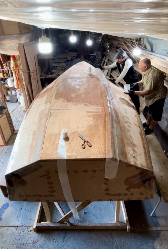 After a six-month break, we’re slowly getting back to finishing the boat. The most recent work we completed involved glassing the hull, correcting imperfections, and sanding it down. This week, we’ve started cleaning up the workshop and preparing to flip the boat over so we can begin working on the interior.