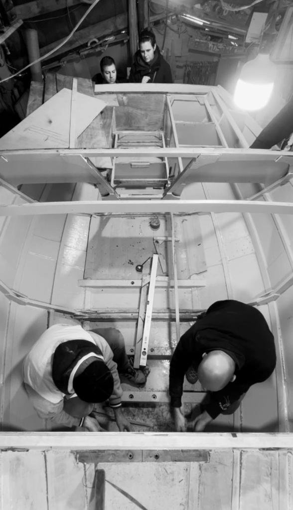 On the boat front, we’ve been busy making the bow unsinkable by filling two forward compartments with non-absorbent foam—because staying afloat is always a good plan, right? 😆 At the same time, we reworked the cockpit, softening sharp deck corners into sleek angles. It took extra work, but it was worth it. If you’re going to smash your face, better on a curve than a corner, right? 😝