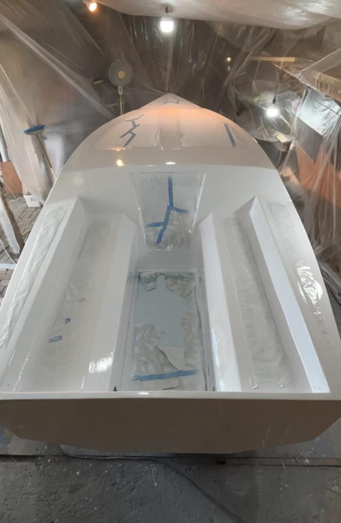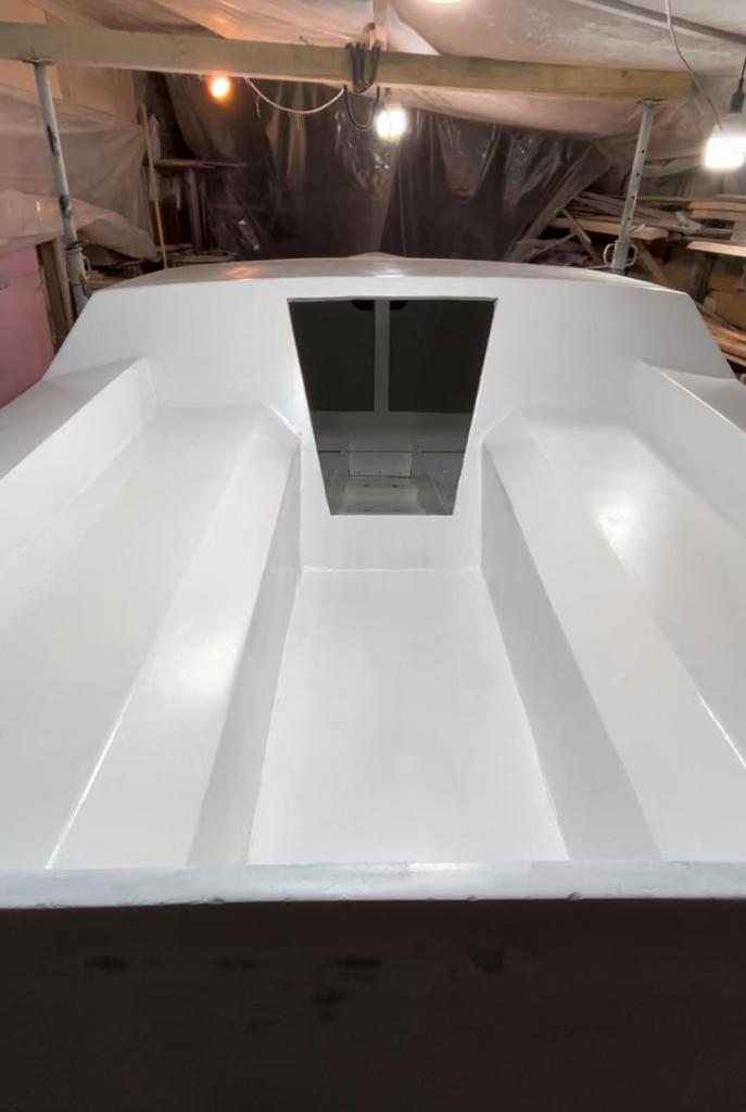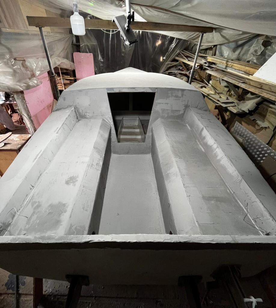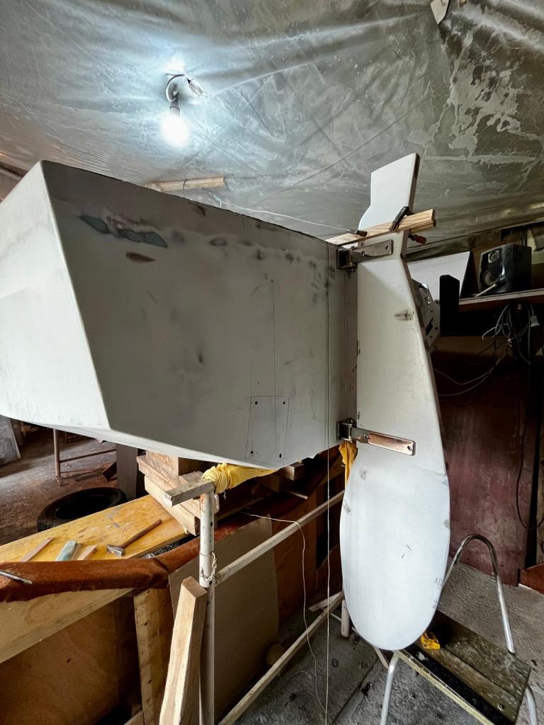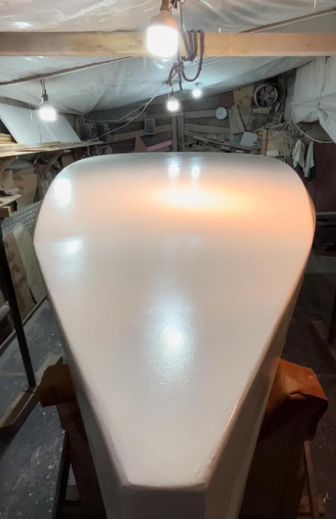 The torpedo is now in place and shaped with filler. Stabilizers and rudder are both ready for their final coats of paint. After weeks of sanding (yes, all of it), we’re finally done with the dusty phase. Now it’s all about clean finishes, hardware installation, and preparing for hitting the water.