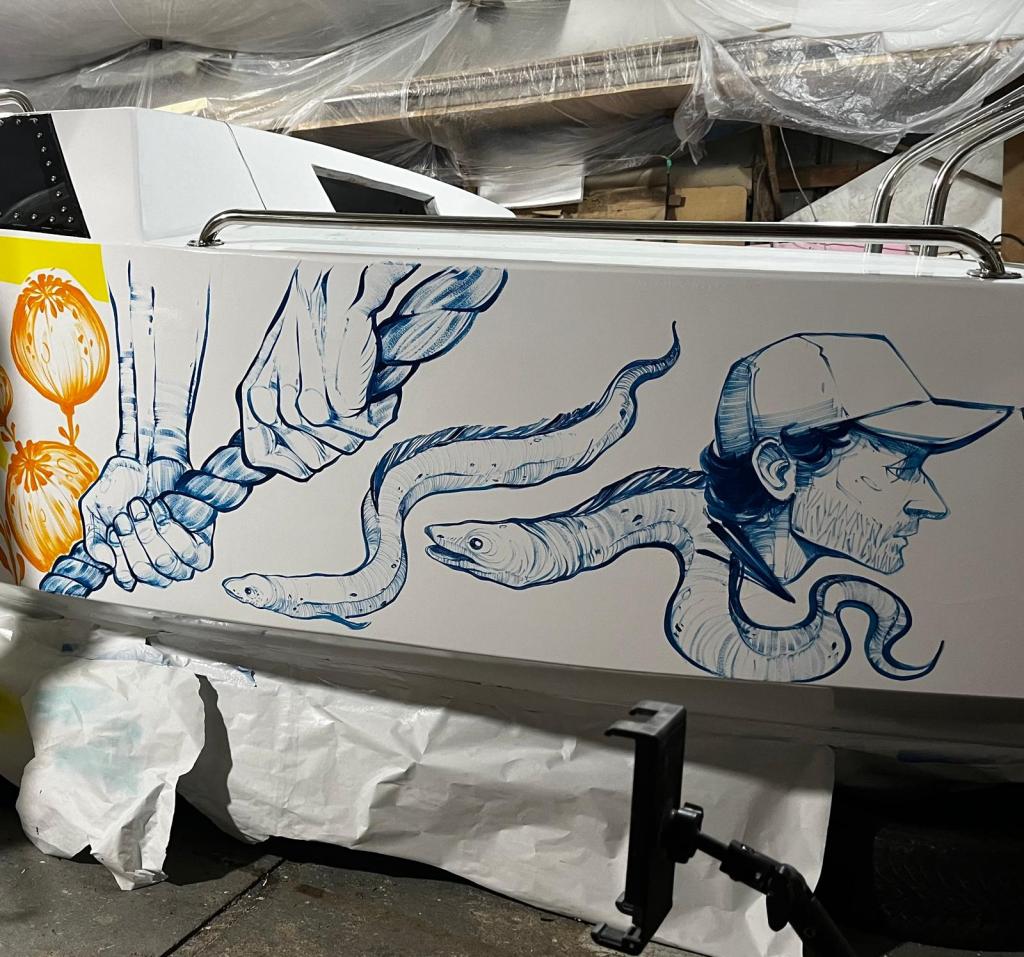 And then there’s the part that makes this project feel even more personal: the paint. I’ve been working with Marjan, Macedonian artist, and watching him transform the hull with graffiti that means something to me. Every detail—from the reeds to the birds, to the portraits and symbols—has a story. It’s not just a boat anymore. It’s becoming something alive.