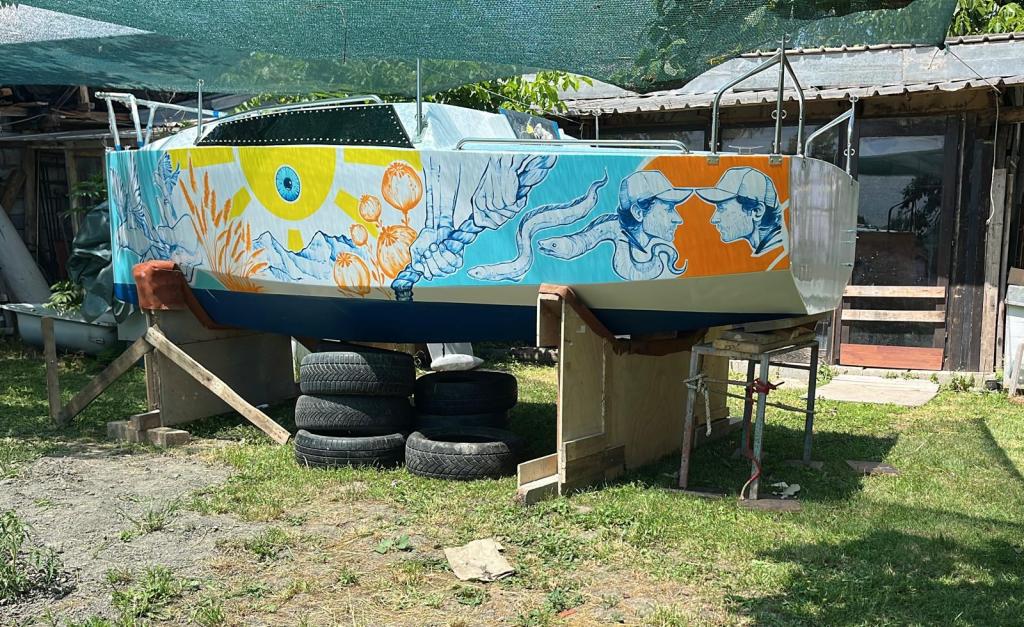 One of the most attention-grabbing parts of the build has been the artwork. The painting on the hull was created by our friend Marjan Dimic, a talented designer and graffiti artist from Skopje whose work can be found all over the world. The process with him went super smooth — we dedicated the starboard side of the boat to the race theme, and the port side to personal elements that carry deep meaning for me.